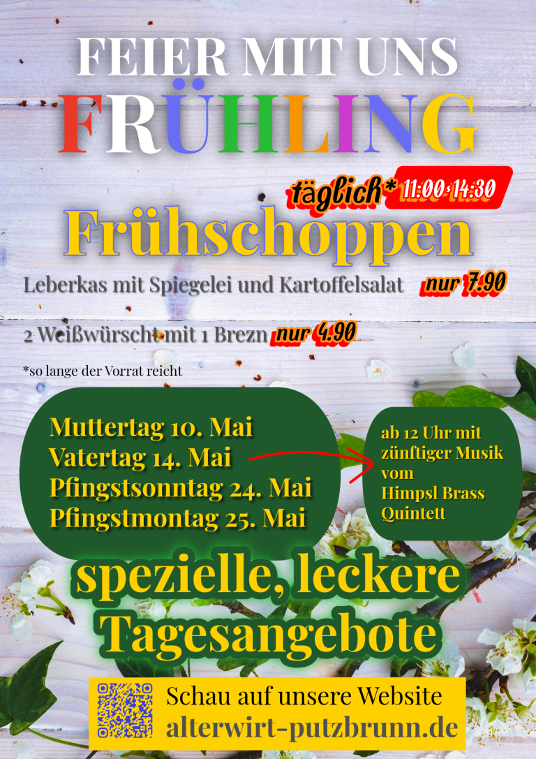 FRÜHSCHOPPEN: Ab Montag, 13.4. gibt es den ganzen Frühling unser besonderes Angebot: