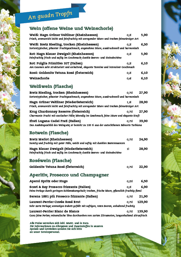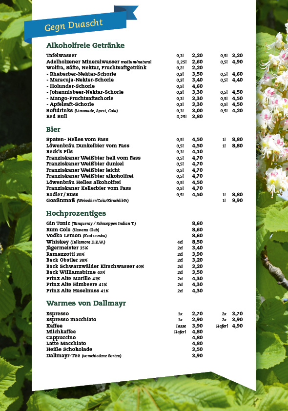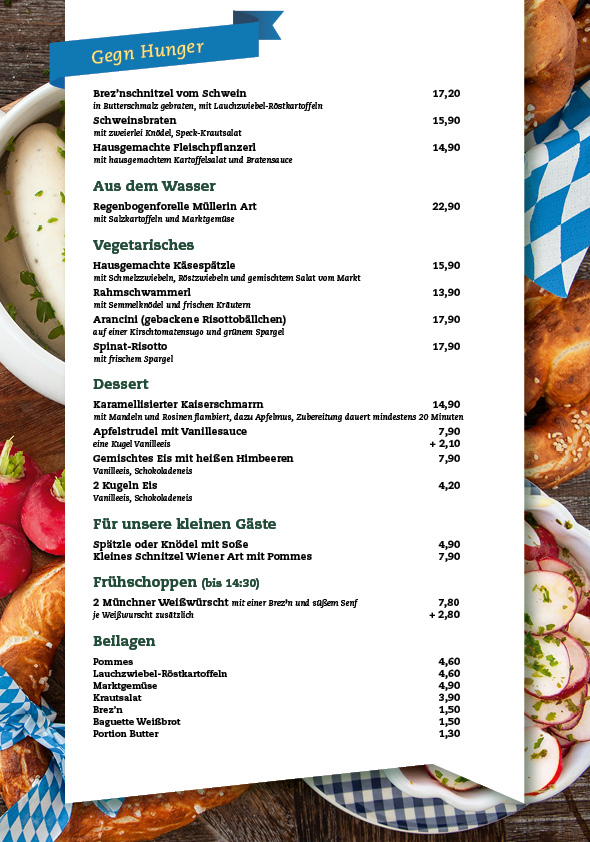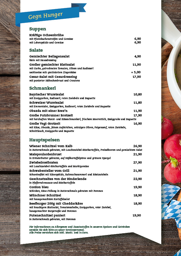 Hier finden Sie unser Angebot an Speisen und Getränken.